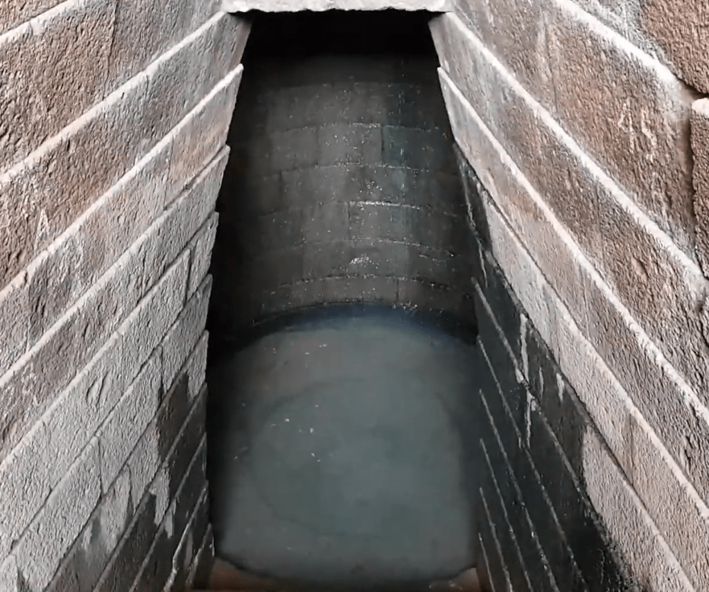Whether the triangular profile is limited to the exposed aperture-edge stones or continues uniformly throughout the full depth of the subterranean structure cannot be confirmed without disassembly. Both cases carry distinct acoustic implications addressed below.
